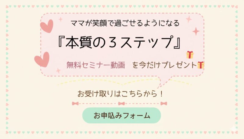 このセミナーでお伝えするのは、ママが自分を追い込まずに、